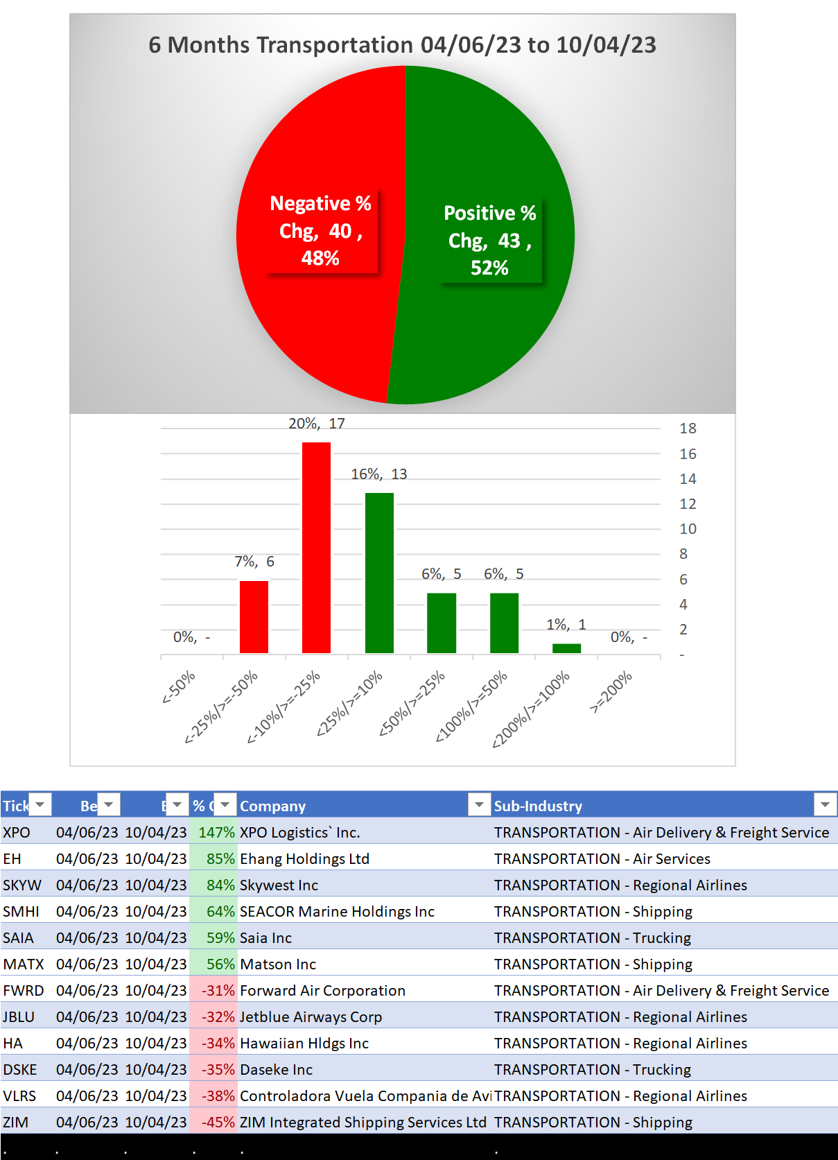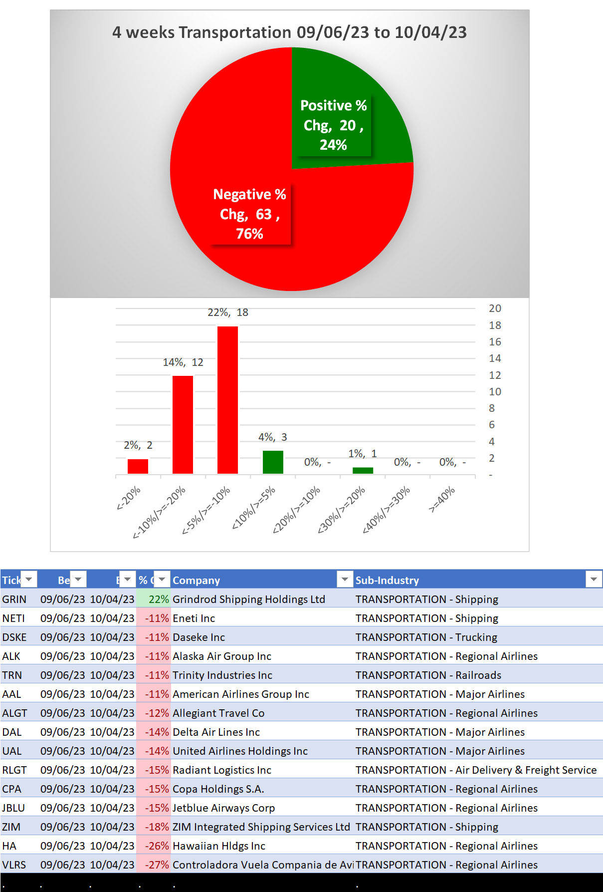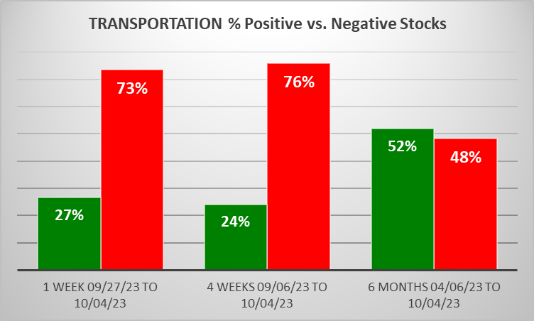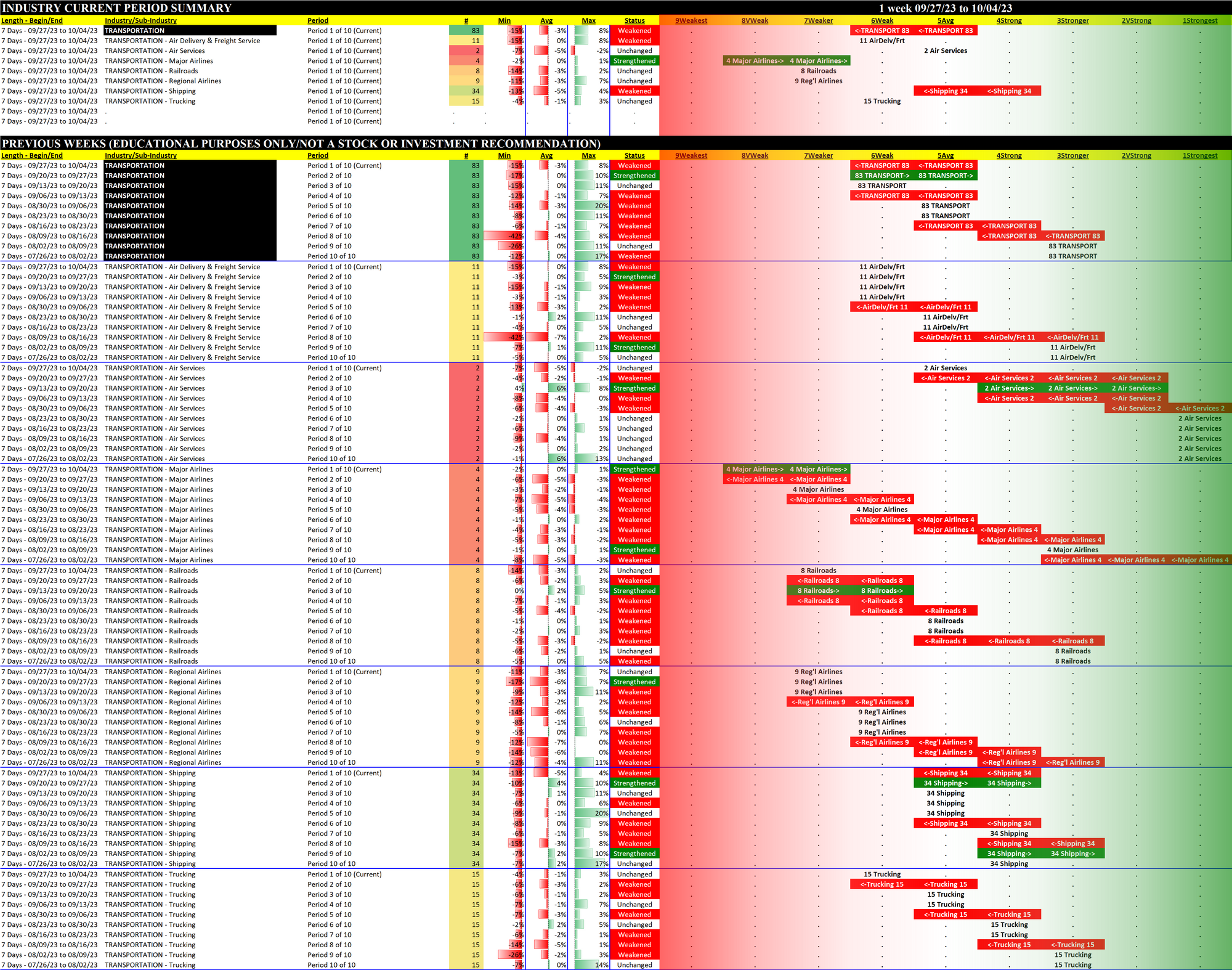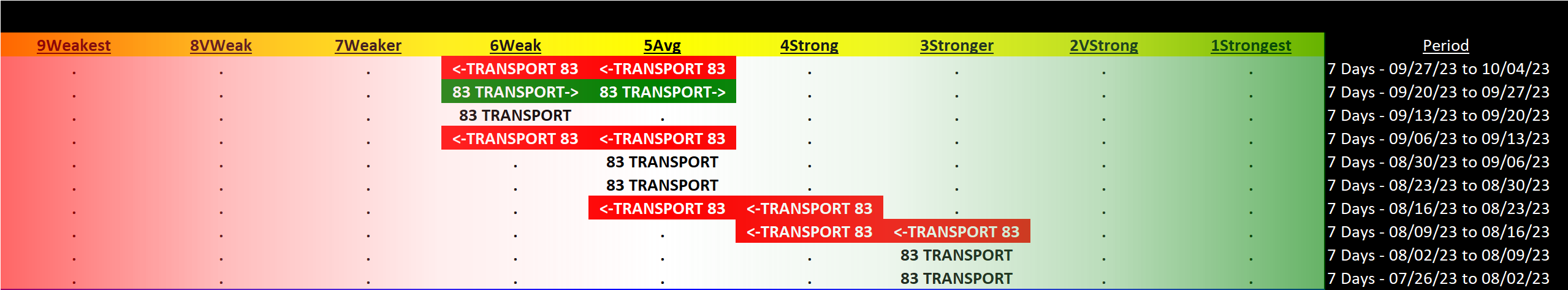 Transportation 2023-10-04: DOWN -1 to WEAK strength rating (6th strongest of 9 levels), previous move was UP