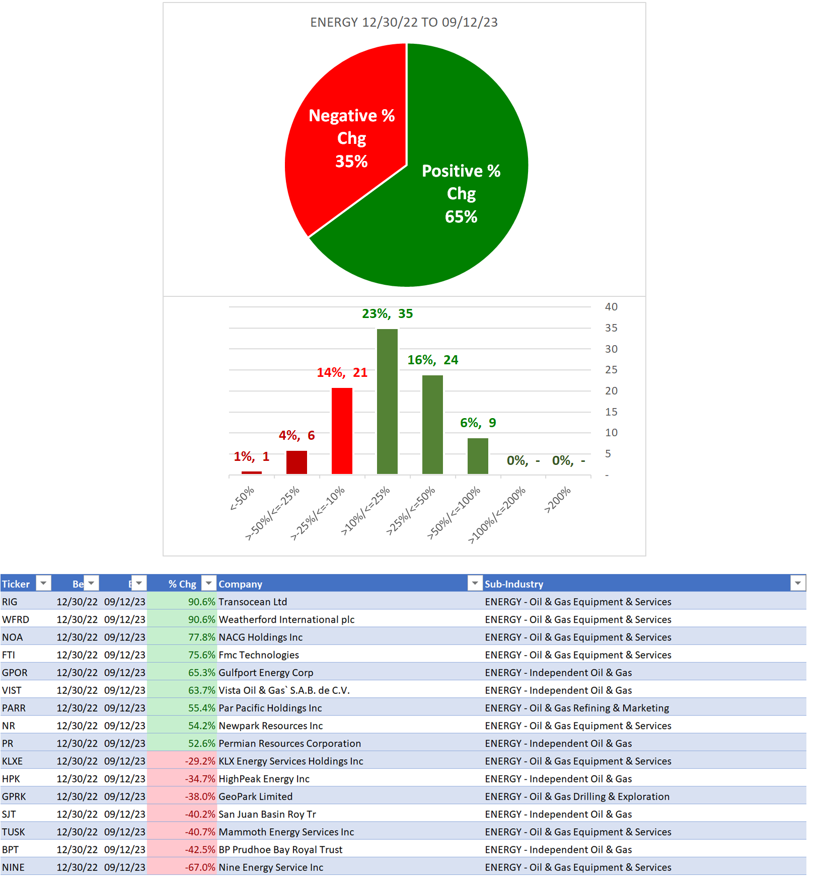 Key stocks: XOM, CVX, TTE, COP, BP, PBR, SLB, EQNR, EOG, CNQ (top 10 by market cap).