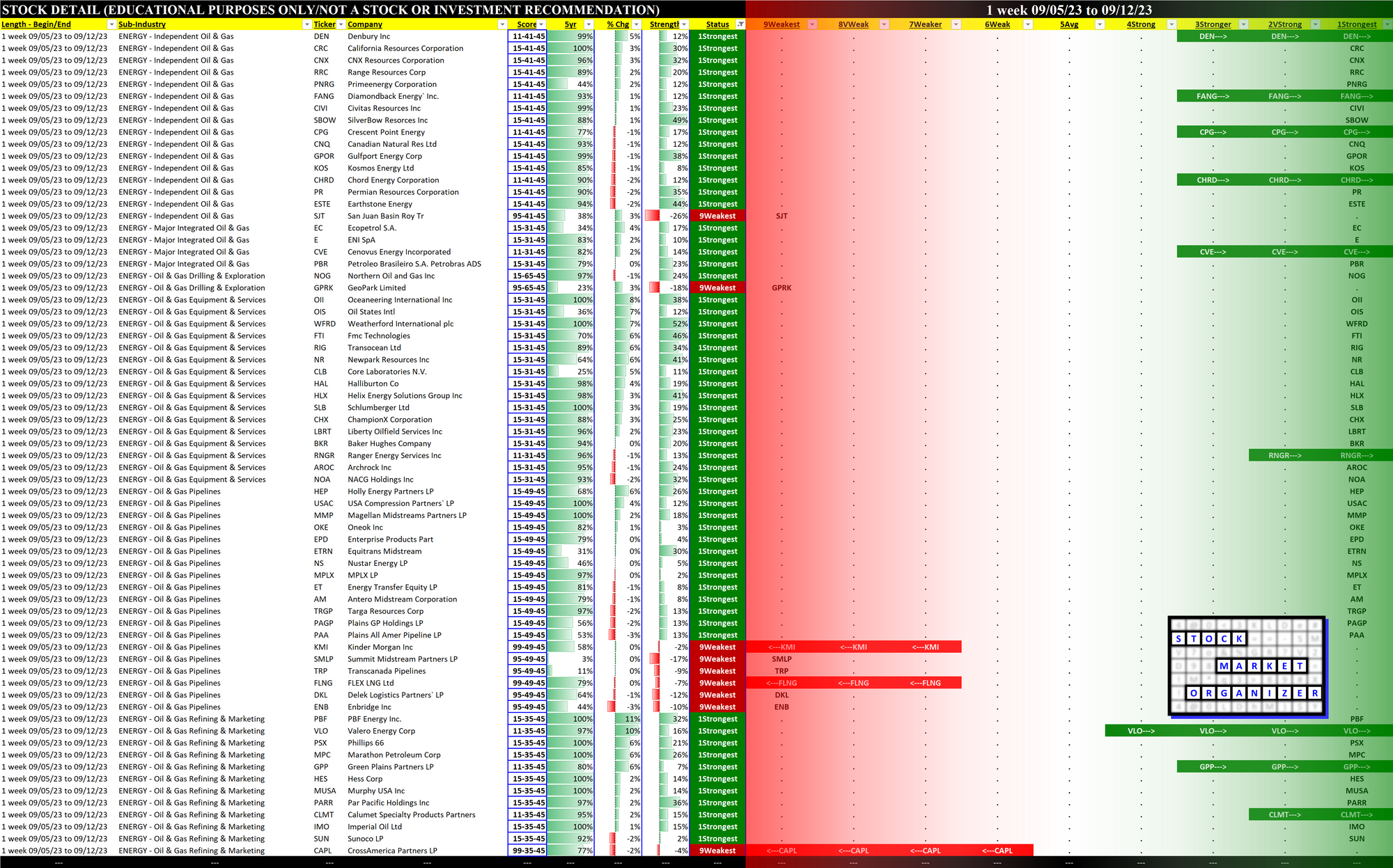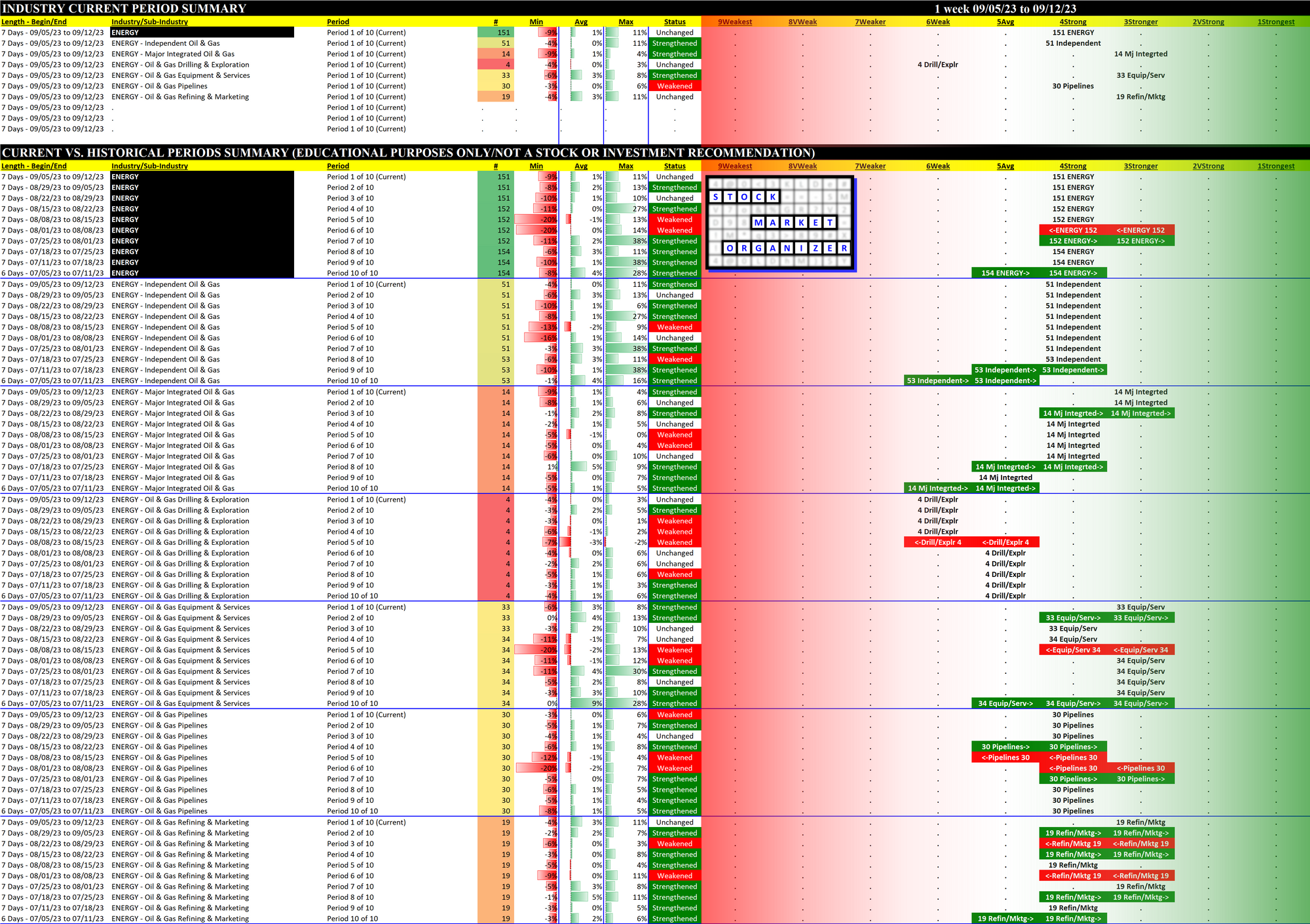 Energy 2023-09-12: Unchanged at "STRONG" strength rating (4th strongest of 9 levels), previous move was DOWN