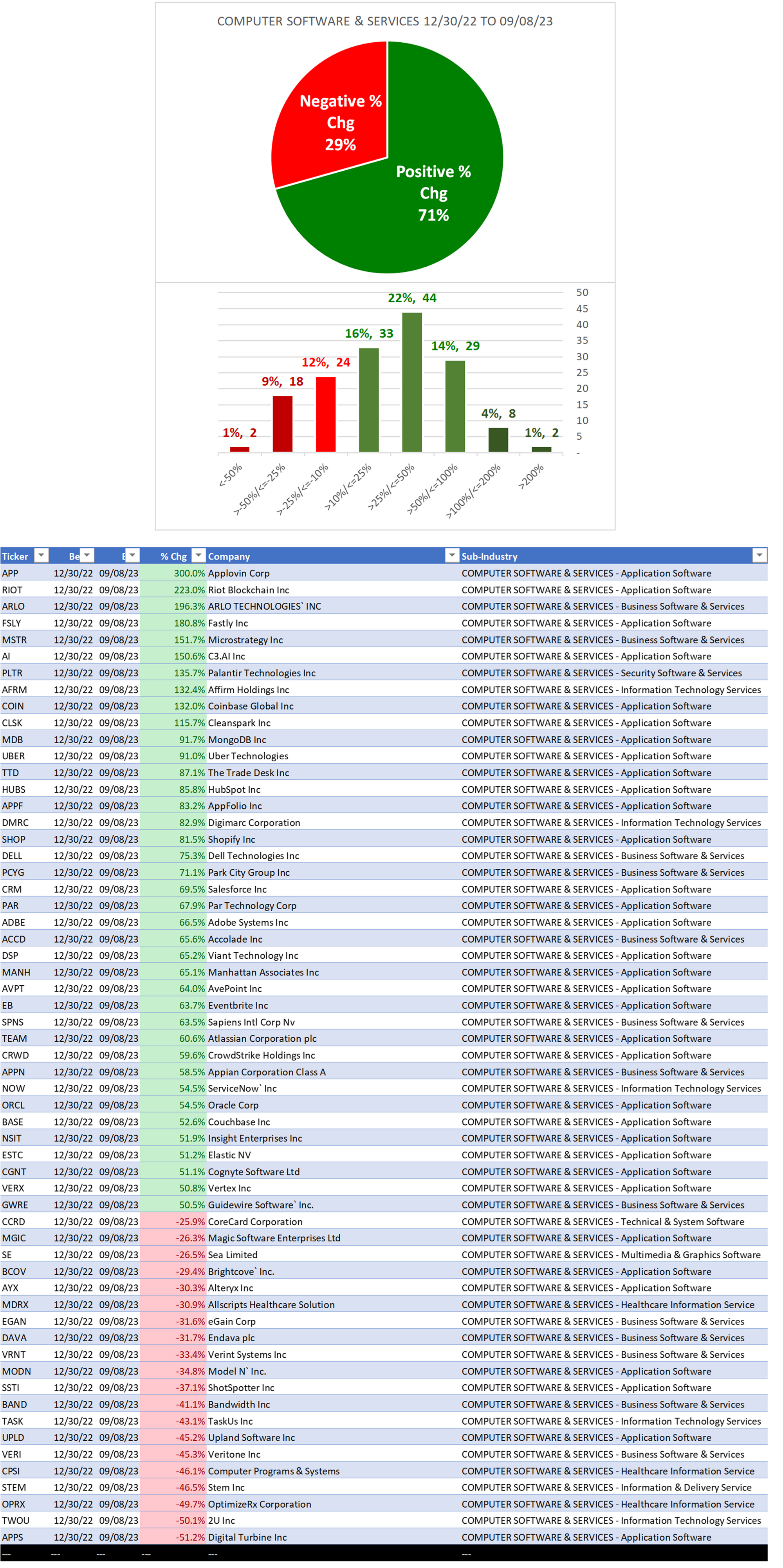 Key stocks: ORCL, ADBE, ACN, CRM, INTU, IBM, NOW, UBER, ATVI, VMW (top 10 by market cap).