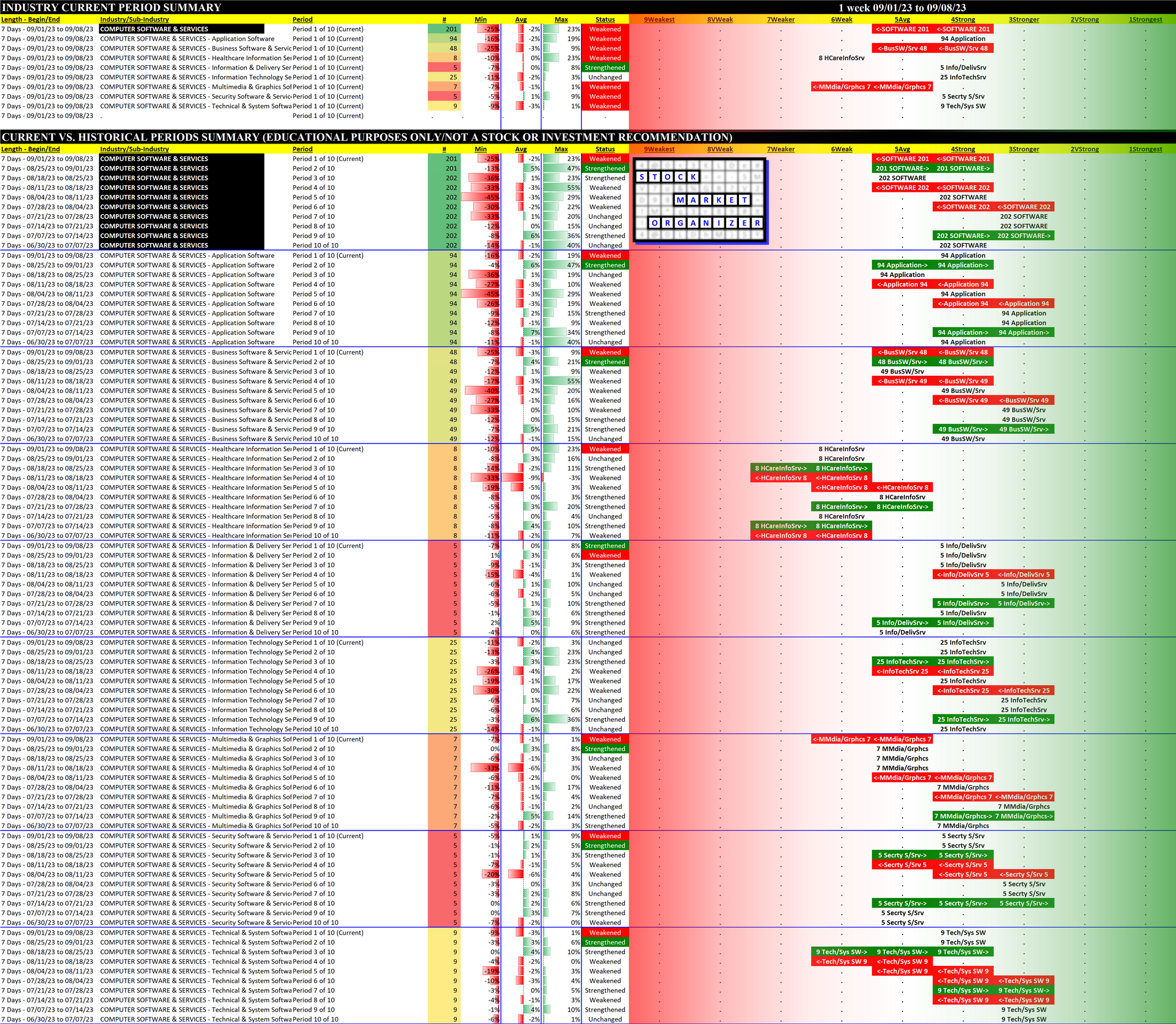 10-Week Industry/Sub-industry Week-by-Week Comparison