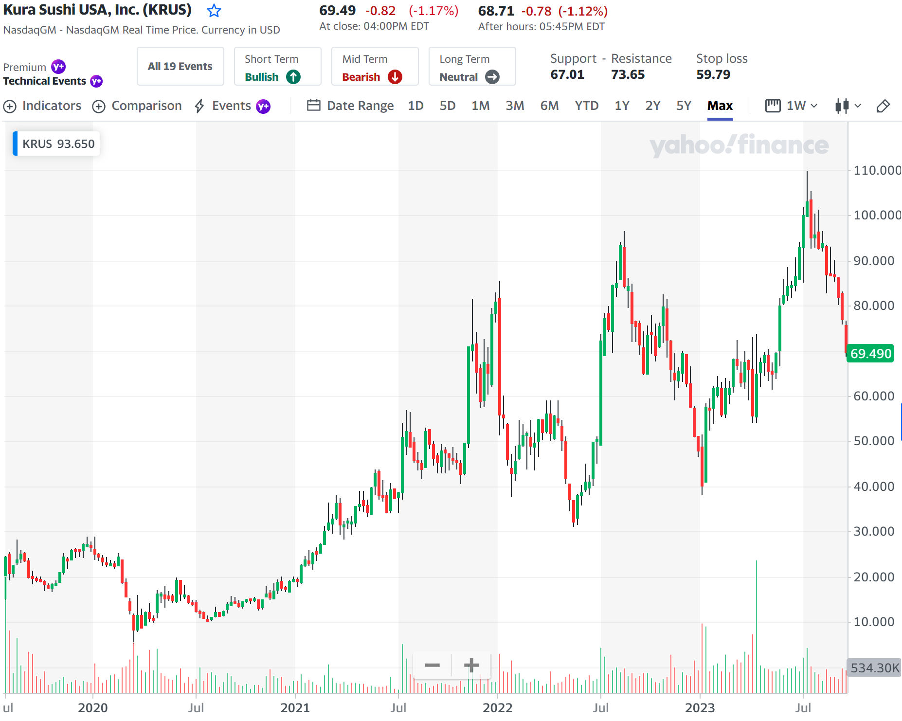 Say you decide "I love sushi" and because everyone tells you that you should analyze what you know you decide you are going to go Warren Buffett all over KRUS/Kura Sushi and figure out how good of a stock it is.