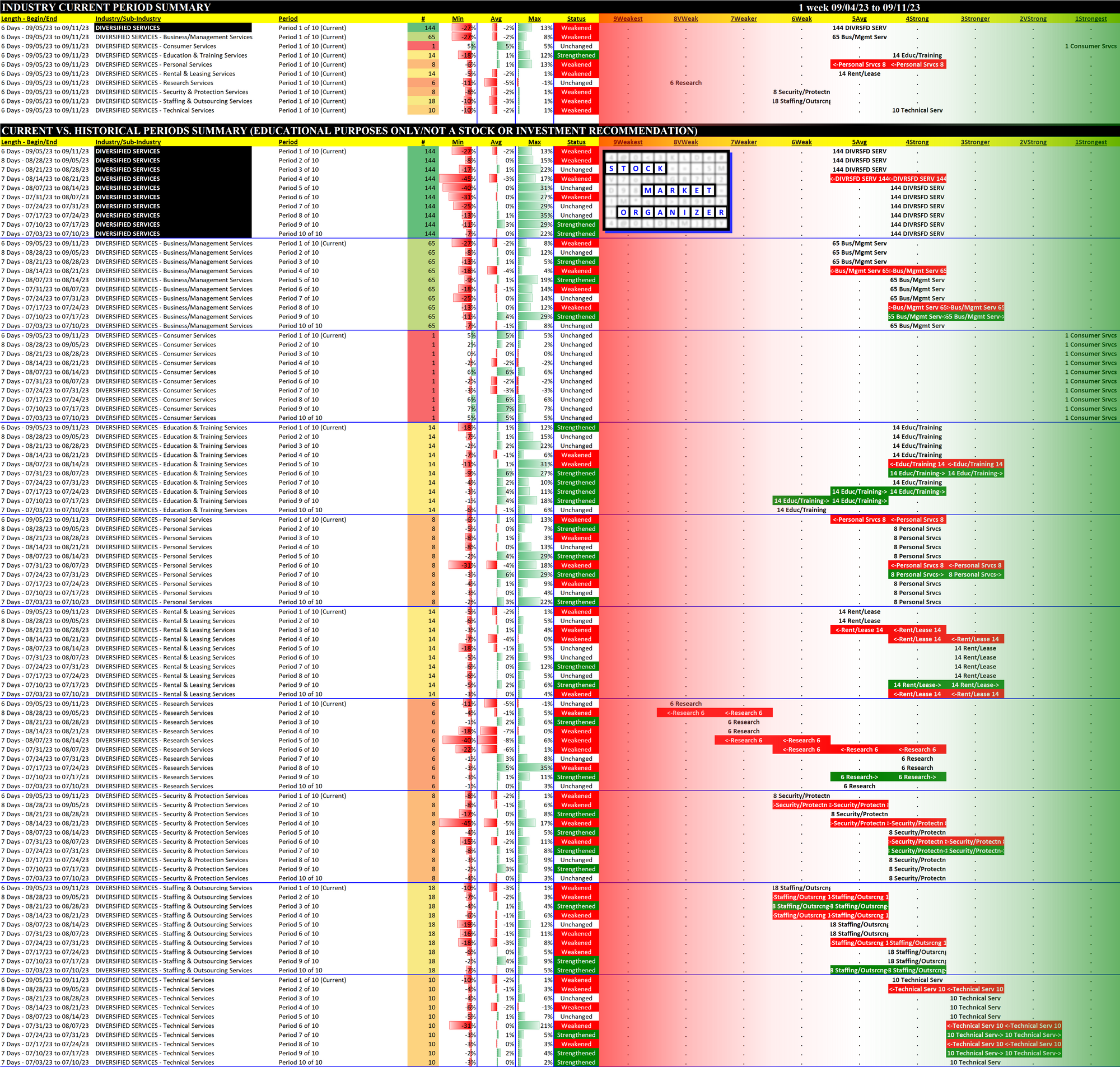Diversified Services 2023-09-11: Unchanged at "AVERAGE" strength rating (5th strongest of 9 levels), previous move was DOWN