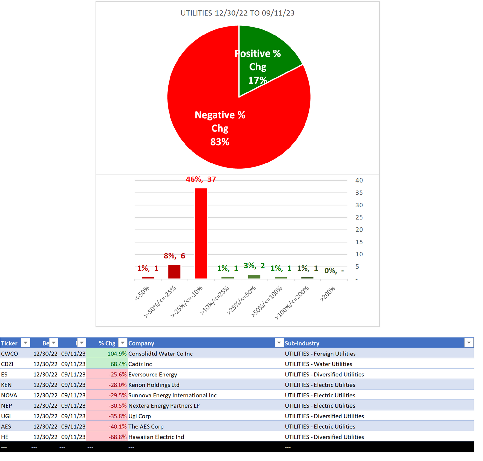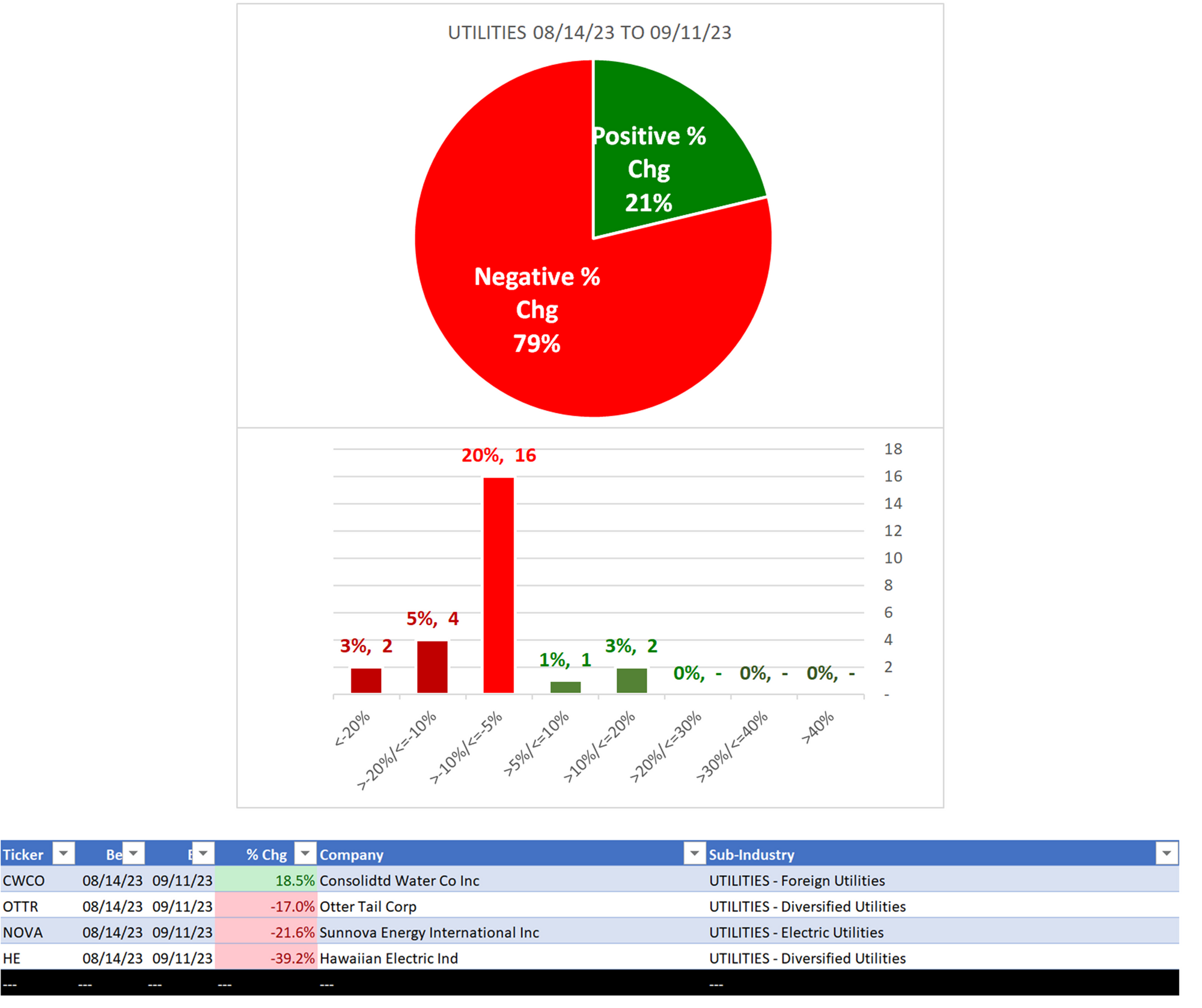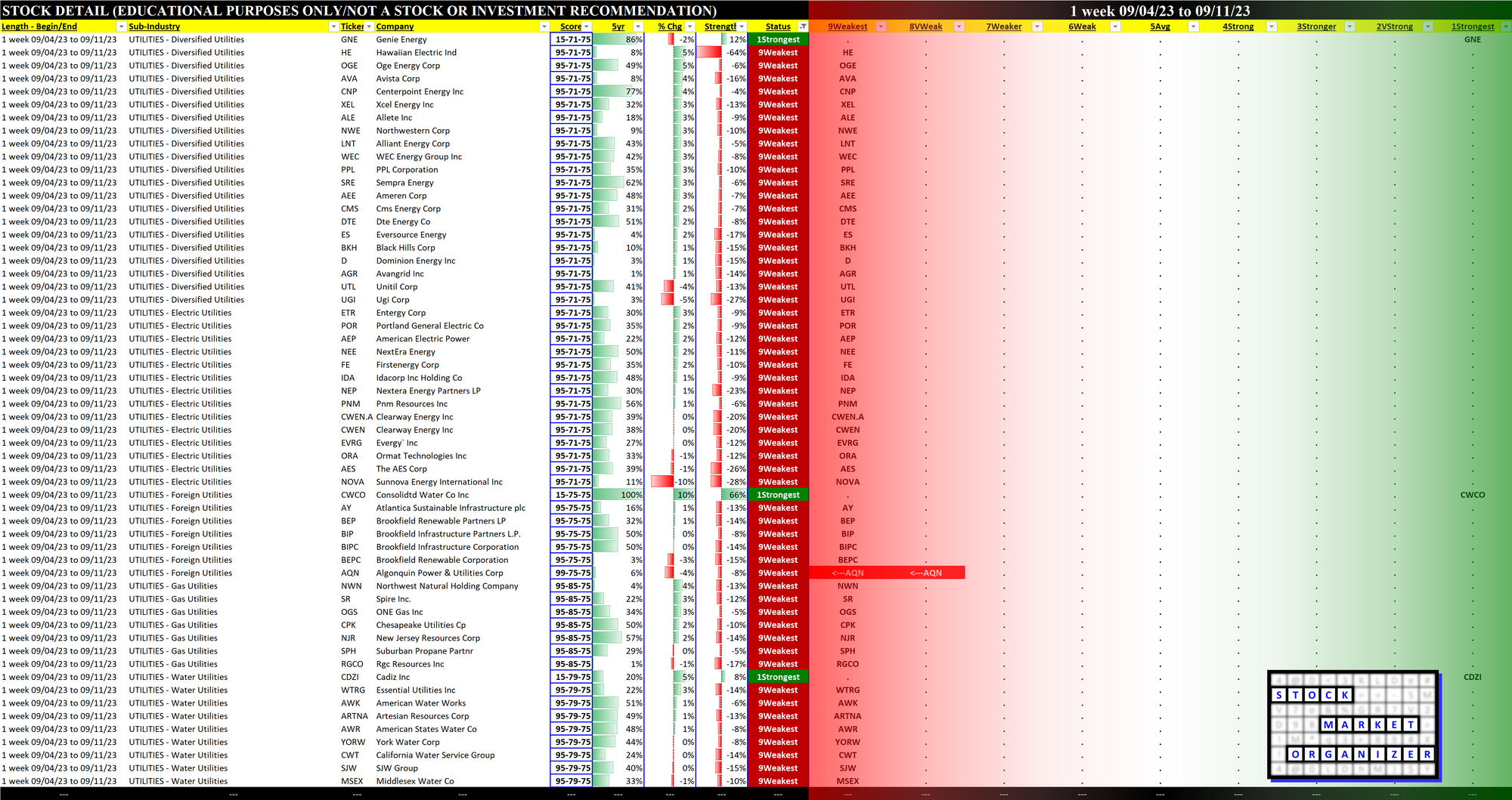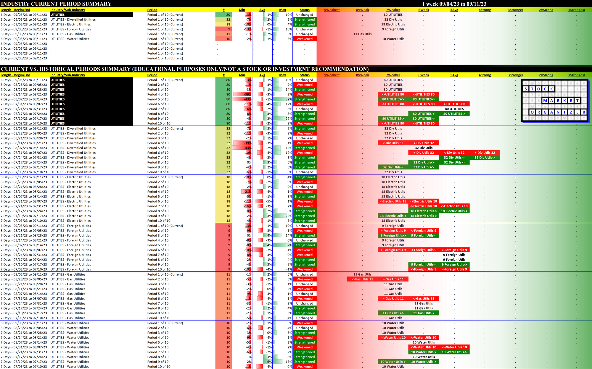 Utilities 2023-09-11: Unchanged at "WEAKER" strength rating (7th strongest of 9 levels), previous move was DOWN