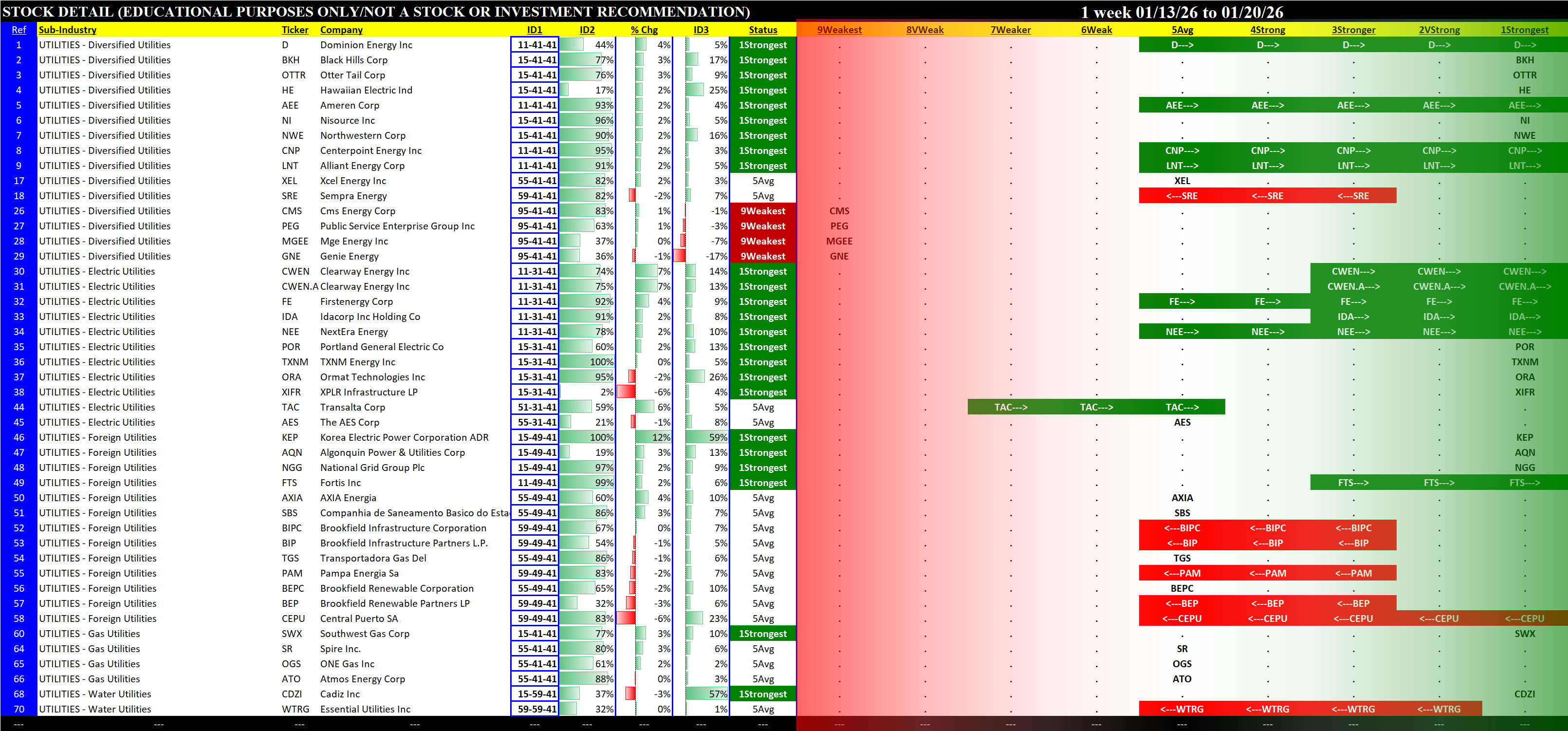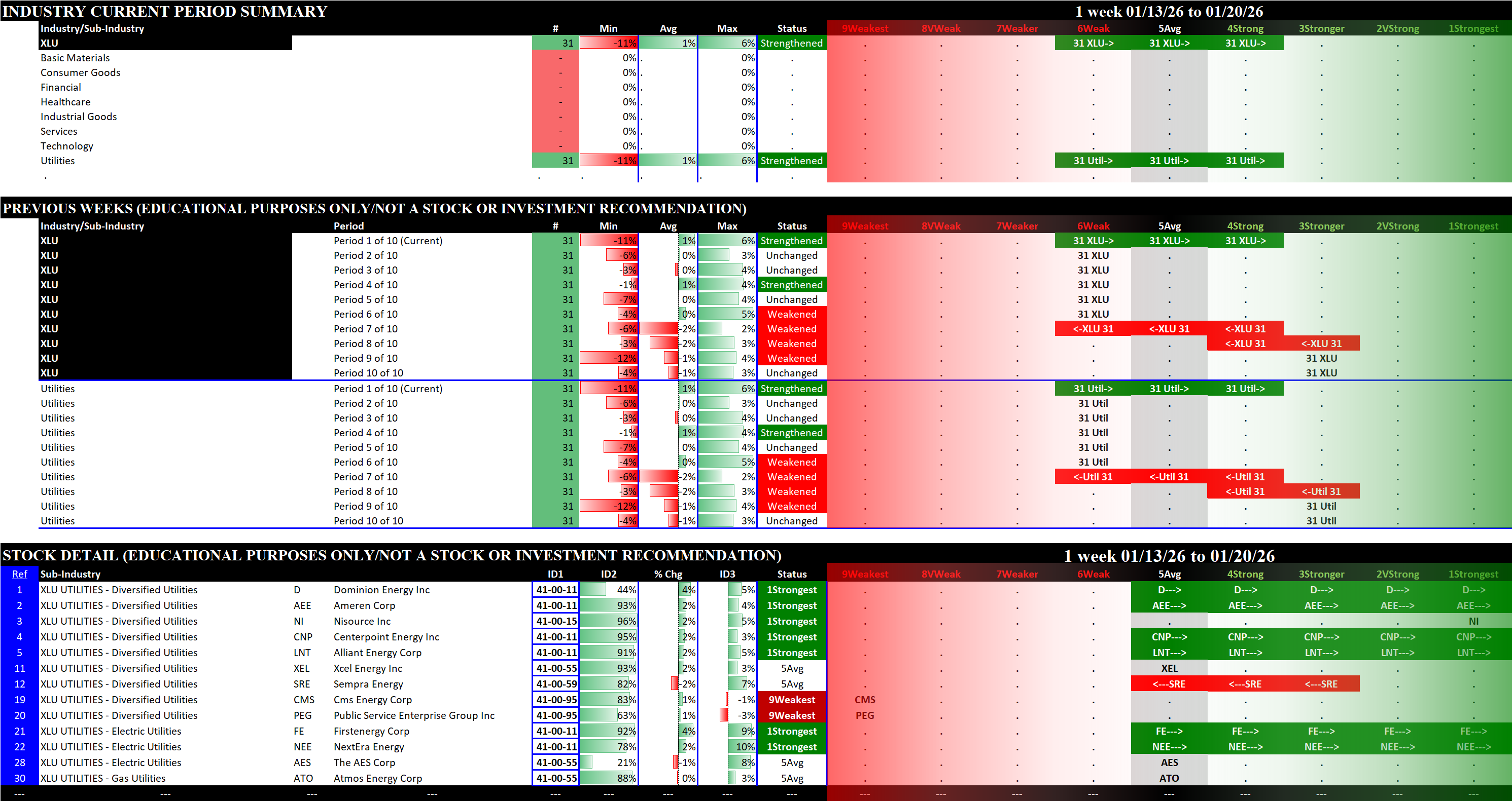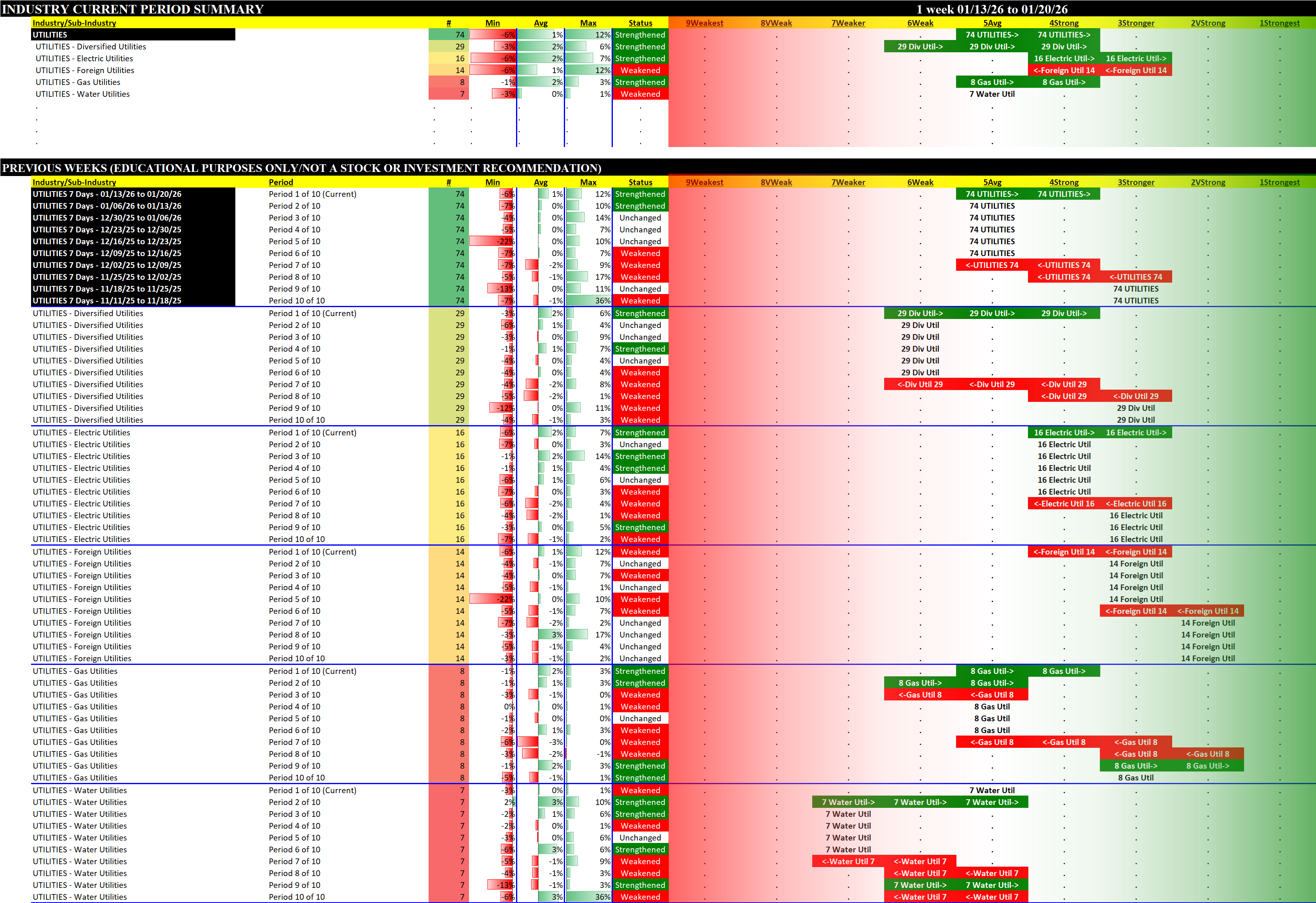 Utilities Industry Tue 2026-01-20: Strengthened +1, 4Strong (XLU Strengthened +2, 4Strong)