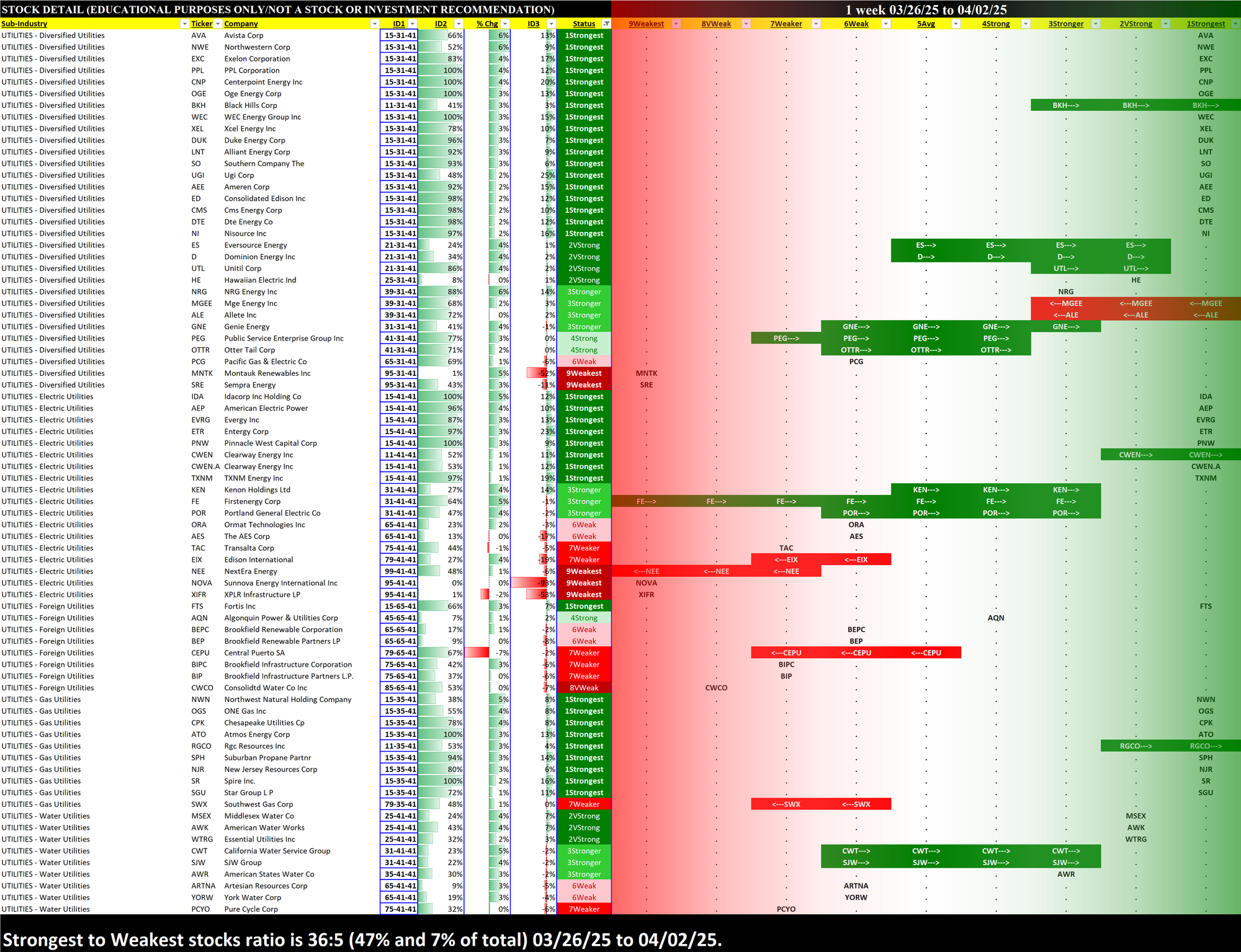 Utilities Industry Wed 2025-04-02: 4Strong strength rating (Strengthened/0)