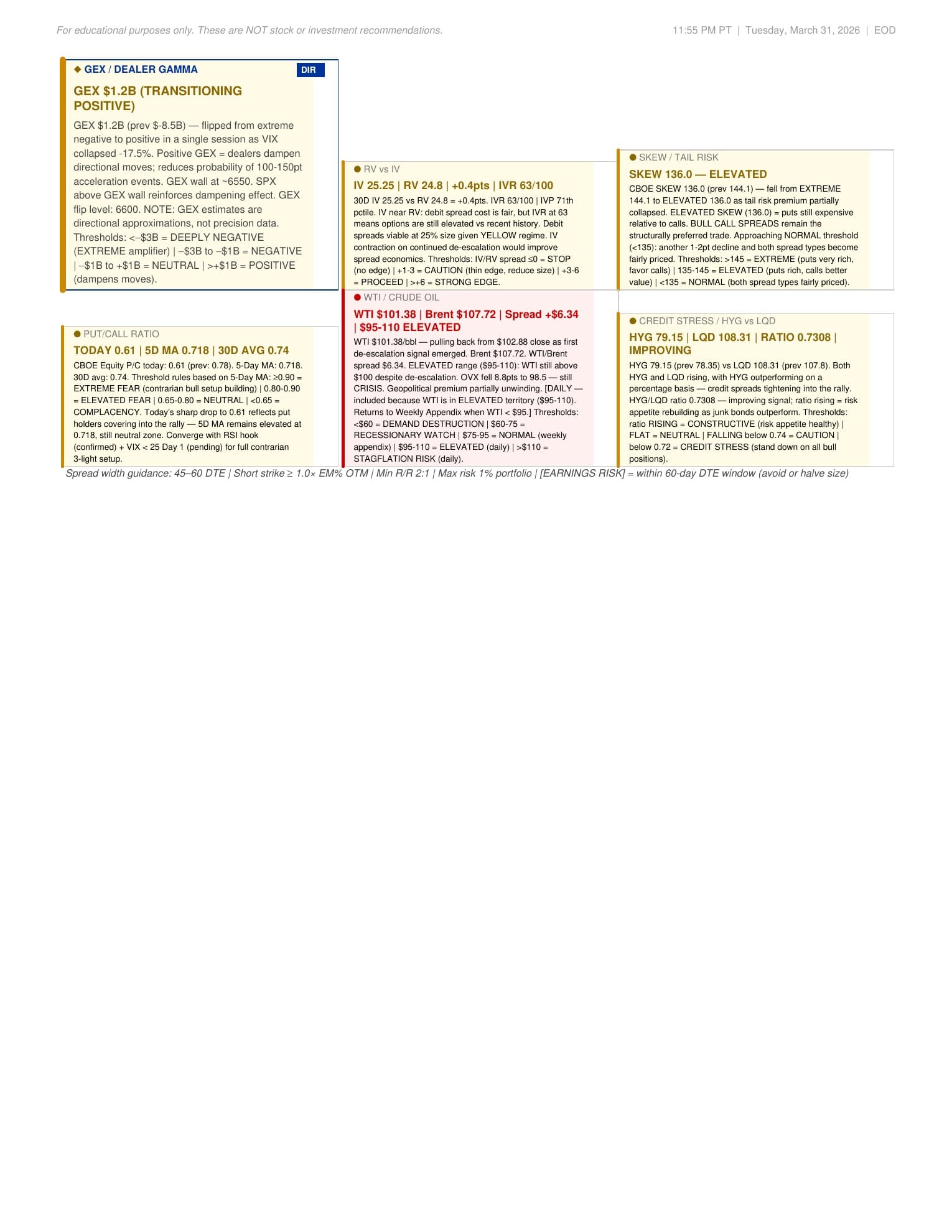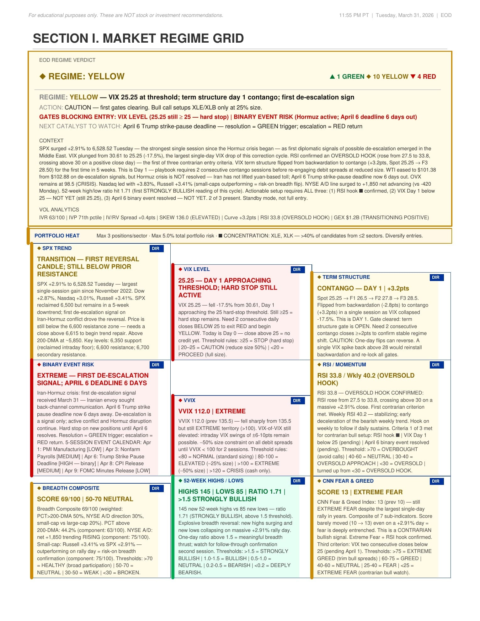 YELLOW Market Regime Grid Tue 2026-03-31 (post-close)